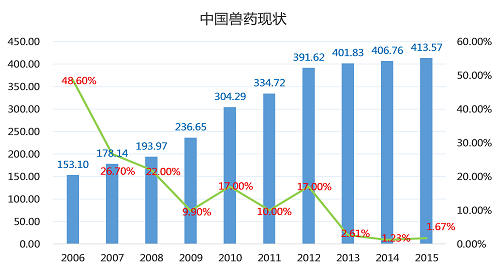 假設(shè)未來中國與美國的人均肉類需求量、人均寵物擁有量以及獸藥使用率相當(dāng),按兩國人口數(shù)據(jù)進(jìn)行匡算,國內(nèi)獸藥市場規(guī)模理論值應(yīng)該是美國的3倍左右,則靜態(tài)數(shù)值可達(dá)180億美元,折合人民幣1000億元以上。