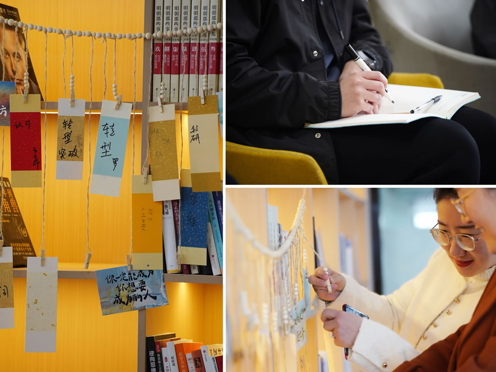 活動(dòng)開(kāi)場(chǎng)后,每位參與者以“2025年最想突破的職場(chǎng)關(guān)鍵詞”為引,寫(xiě)下新年的成長(zhǎng)期許?;厥?shū)友們將關(guān)鍵詞書(shū)簽懸掛于讀書(shū)室主題墻,再以"可落地行動(dòng)項(xiàng)+計(jì)劃閱讀書(shū)目"構(gòu)建年度閱讀企劃。