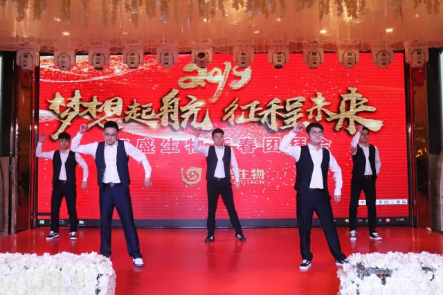 2018年以“夢想起航 征程未來”為主題的回盛生物新春團拜會在大自然皇家宴酒店舉行。員工自發(fā)編排的舞蹈、小品、相聲等節(jié)目贏得員工們的陣陣掌聲,現(xiàn)場氣氛活躍,笑聲不斷,精彩紛呈。