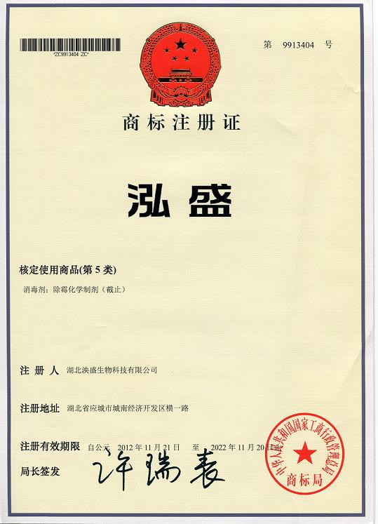 泓盛商標(biāo)注冊證